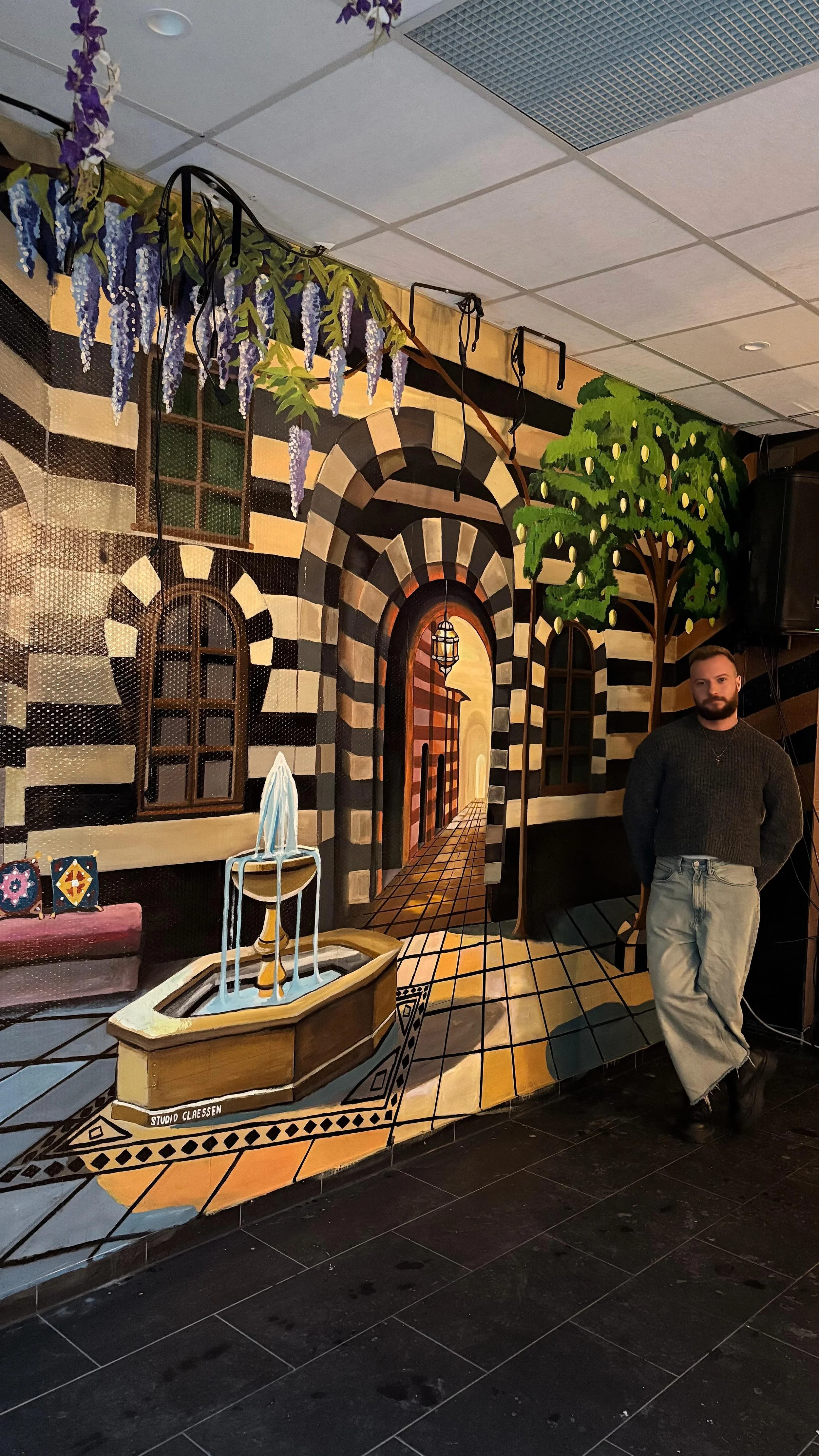 Dutch and Italian heritage, his work reflects both the clarity of Northern traditions and the warmth and symbolism of Southern culture. Educated at the Art Academy in Maastricht and later earning a Master’s in Product Design in Milan, Claessen’s background blends conceptual thinking with material craftmanship. Working in oil on linen, he embraces the weight of art history shaping a contemporary language that is entirely his own. Philosophy runs through his practise: painting becomes a meditation on loss, transformation and beauty. Gold leaf, architectural motifs, and patterned surfaces recall sacred art, while his figures carry intimacy and vulnerability of lived experience. This dialogue between past and present, sacred and personal, gives his work its distinct voice. Symbolism lies at the heart of Studio Claessen. Every gesture, ornament and fragment of memory resonates beyond the canvas. Not as decoration, but as an opening for reflection.